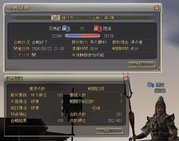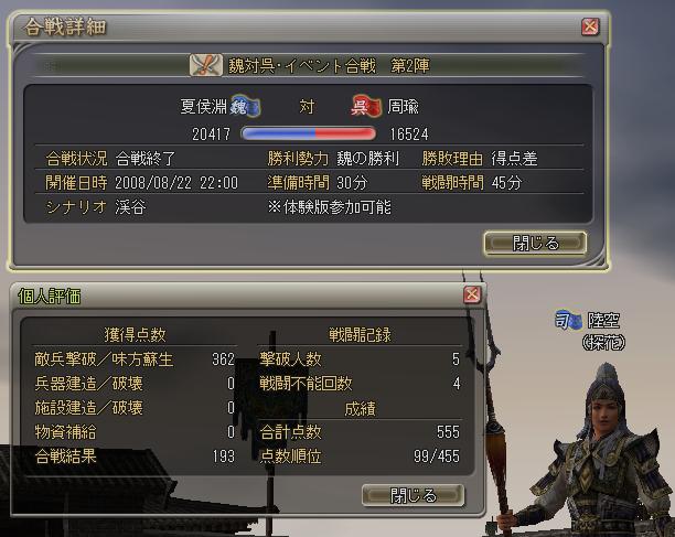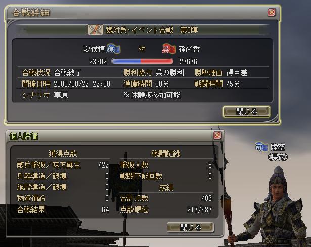 ← カラオケ行ってて3陣の途中から参戦。ソロ弓兵でチクチクやってたかな