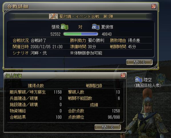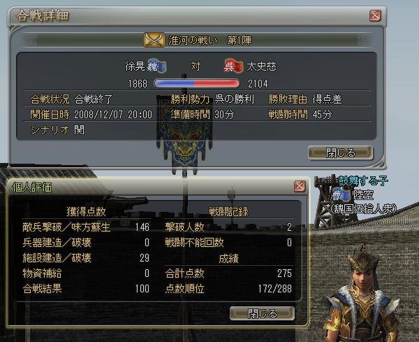 南関に魏の仲間達が残っている情報を得たので最南端から猛チャージするも時間切れ。敗北ヽ(;´Д`)ノ