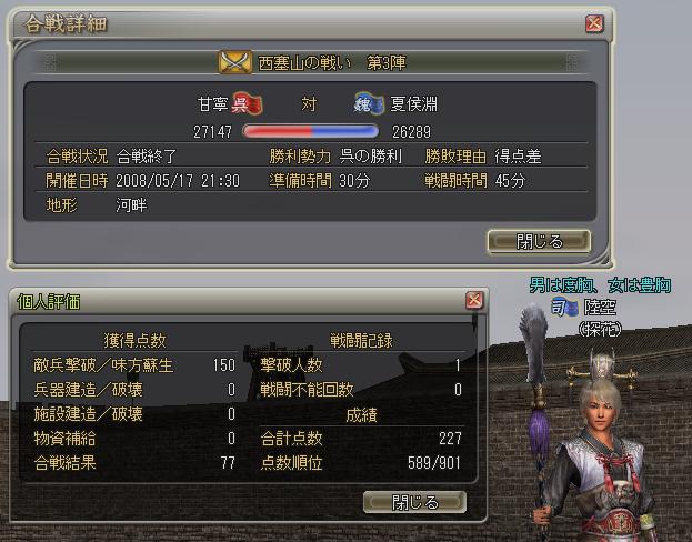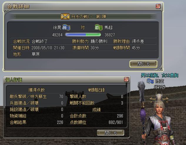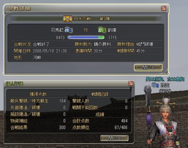 ←↓終わっての援軍。僕的にニガテな渓谷。ニガテというより絶えず挟撃警報なんで練丹的に背中に火が付いてるカンジ。たしか初5万点と記憶。僕が思うに魏のみんなは「おっすおっす」という言葉につきると思うス