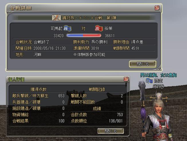 ←司馬懿様逃してのガチ。これはもう呉のみんなのテクに翻弄された感。僕が思うに呉のみんなは「生粋の戦闘マシン」だと思うス