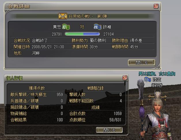←負けこんでいたのでガチで行ったハズ。おにゃんこさんの武将だし~。でも負けて結構凹んだヨ。僕が思うに蜀のみんなは「粋なテクニシャン」だと思うス