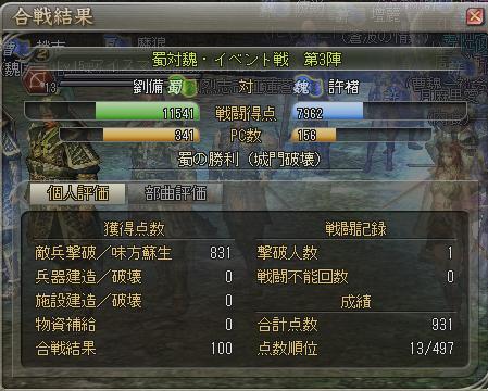 結果は敗北~蜀のみんなTUEEっス、でもなかなかGJな戦闘内容だったとオモイマス